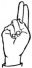 На ћирилици написано АНГЕЛИНА ПУДАР састоји се из 13 слова [?]. Исписано ћириличном једноручном азбуком за глувонеме: